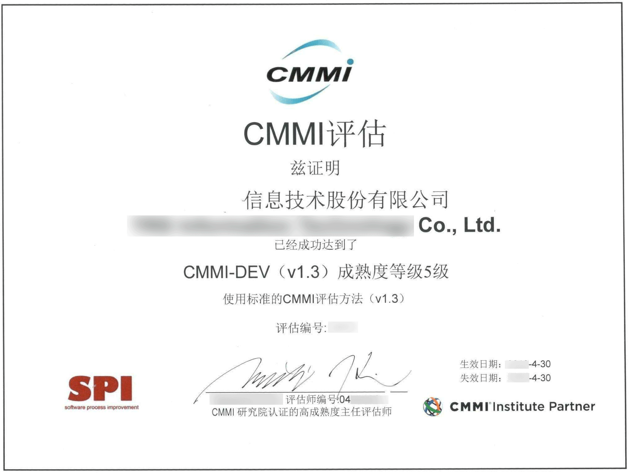 CMMI 5级,优化级, 12个月以上。