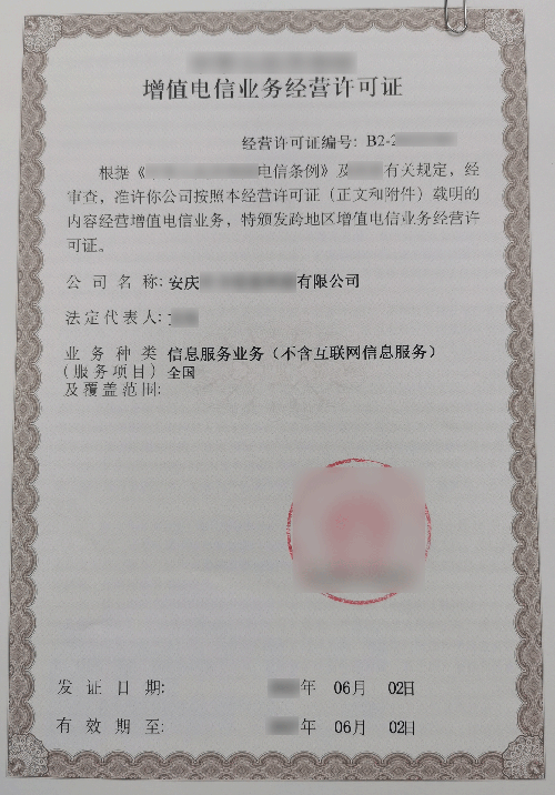 资质全称:第二类增值电信业务许可证-信息服务业务(不含互联网信息服务)