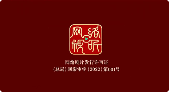 网络剧片发行许可证,国家广播电视总局发放的行政许可,许可以“网络视听”四个字为主体图,以朱红色为底色,时长5秒,放置于节目片头开始部分。